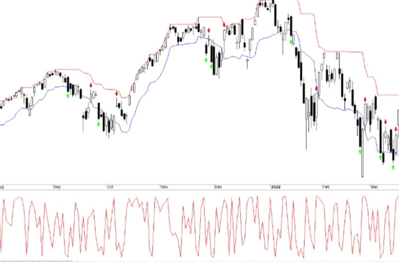 It sounds complicated but it’s just measuring how far the price has stretched away from its recent peak.