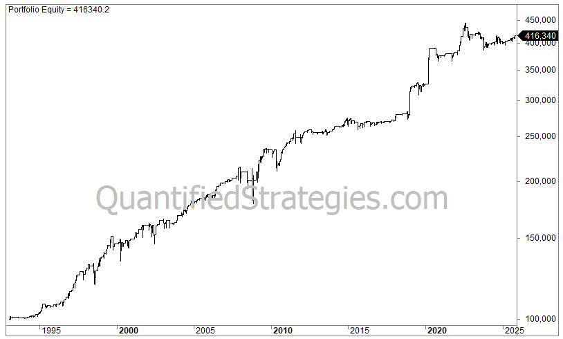 Let’s look at how your equity would have grown if you traded all signals from 1993 until today.