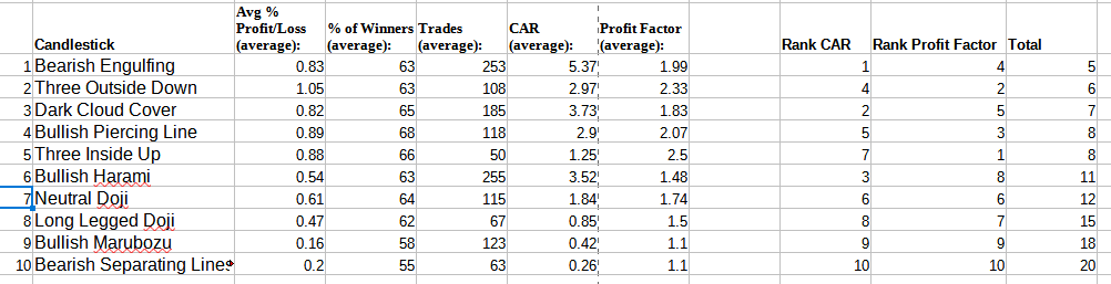 After testing 75 different candlestick formations, we ranked them from worst to best.